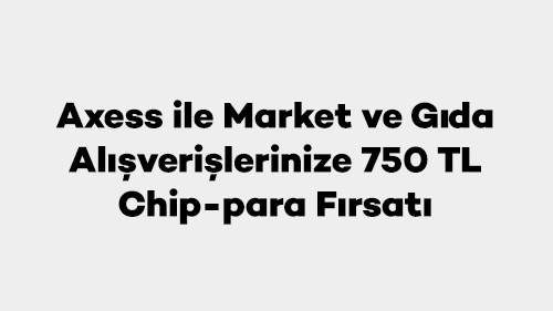 Axess ile market ve gıda sektörlerinde yapacağınız 2.250 TL ve üzeri ilk harcamadan sonraki her 2.250 TL ve üzeri alışverişinize 75 TL toplamda 750 TL chip-para fırsatı