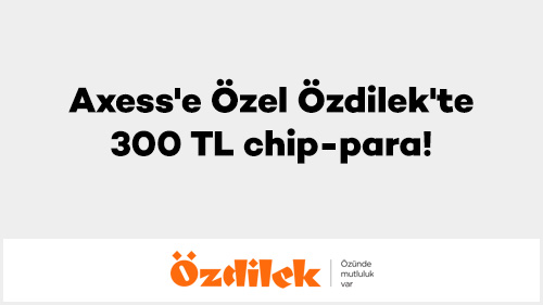 - 19 Kasım - 16 Aralık 2025 tarihleri arasında, Özdilek Mağazalarından ve Marketlerinden tek seferde yapacağınız 3.000 TL ve üzeri ilk alışverişinizde 300 TL chip-para sunulmaktadır. Chip-para hediyesi, kampanya koşulları gerçekleştirildikten sonra karta hemen yüklenecek ve 1 Ocak 2026 tarihine kadar Özdilek Mağazalarında ve Marketlerinde kullanılabilecektir. Bu tarihe kadar kullanılmayan chip-paralar, sonrasında tüm Axess üye iş yerlerinde kullanılabilir.