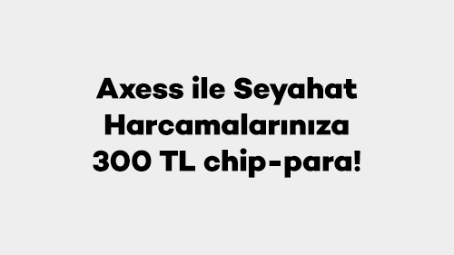 Axess ile konaklama, seyahat acenteleri, havayolu ve araç kiralama sektörlerinde yapacağınız toplamda 15.000 TL ve üzeri harcamalarınıza 300 TL chip-para.