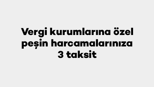 Vergi kurumlarında, 2.000 TL - 1.000.000 TL arasındaki peşin harcamalarınızı faizsiz ve ücretsiz 3 taksitte geri ödemek için hemen katılabilirsiniz.
