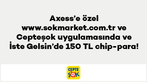- Kampanya kapsamında 1 – 30 Nisan 2026 tarihleri arasında www.sokmarket.com.tr, Cepteşok uygulamasından ve İste Gelsin’den tek seferde yapılacak 1.500 TL ve üzeri alışverişlerde 150 TL chip-para sunulmaktadır.