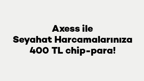 Axess ile konaklama, seyahat acenteleri, havayolu ve araç kiralama sektörlerinde yapacağınız toplamda 20.000 TL ve üzeri harcamalarınıza 400 TL chip-para.