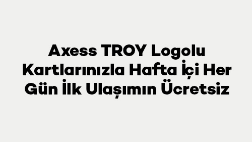 - Kampanya döneminde hafta içi her gün, TROY logolu temassız özellikli banka kartları, kredi kartları, ön ödemeli kartlar veya TROY logolu kartlarla entegre mobil ödeme (NFC) yöntemleriyle yapılan ilk ulaşım ödeme işlemi ücretsizdir.