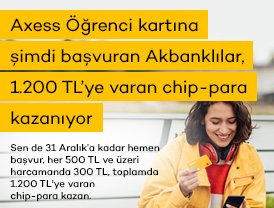 - Axess, Axess Öğrenci ve Free asıl kartınız ile bu kampanyadan 1-31 Aralık 2025 tarihleri arasında yararlanabilirsiniz.