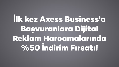 İlk kez Axess Business kredi kartı sahibi olarak 15 Haziran’a kadar yapacağınız 500 TL ve üzeri dijital reklam harcamalarından %50 indirim kazanabilirsiniz.